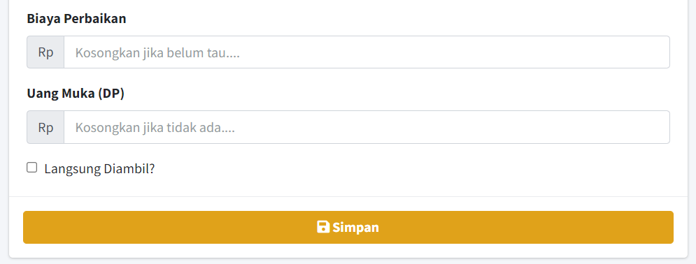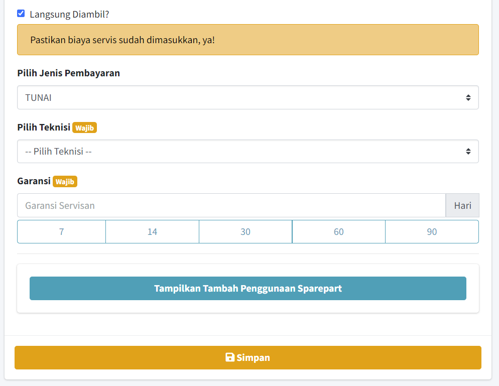 4. Selanjutnya, jika servisanmu ternyata langsung diambil. Centang langsung diambil dan akan muncul form lanjutnya