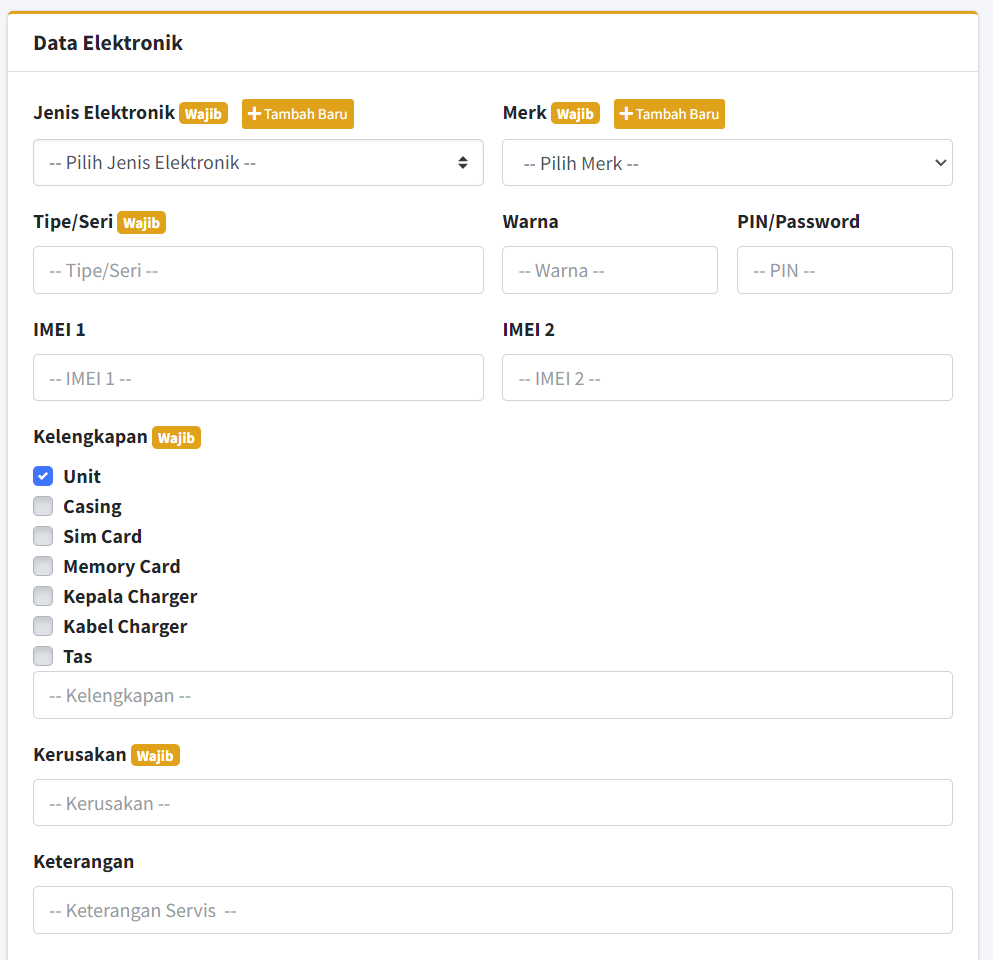 2. Isi jenis elektronik yang akan diservis dan keterangan lainnya yan dibutuhkan