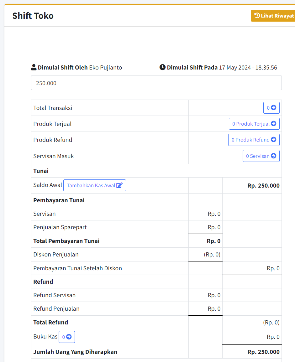 2. Shift sudah terbuka dan bisa beraktifitas untuk tokomu!